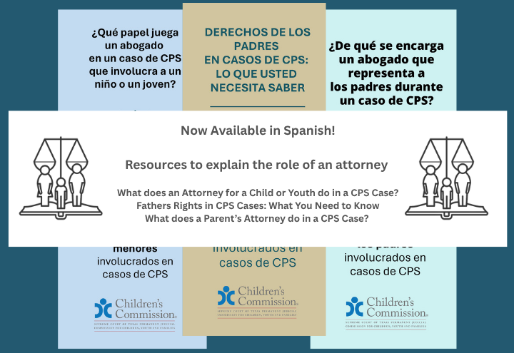 The Children’s Commission is thrilled to share three resources now available in both English and Spanish to explain the role of an attorney, and the rights of fathers who are involved in a child welfare case: